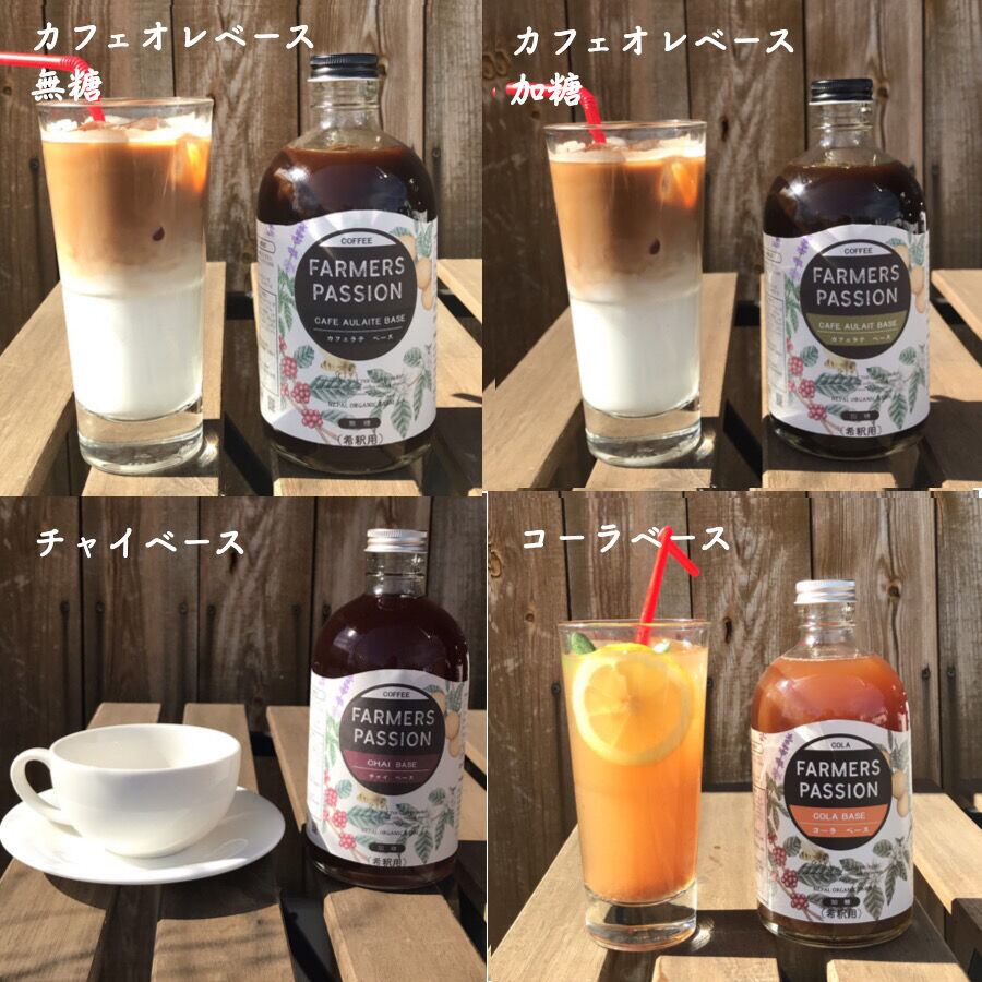 大人気のカフェオレベース(無糖/加糖)、コーヒーチェリーのコーラベース、チャイベースの4種類から2本をお選び下さい。大切な方へのギフトに最適です。
