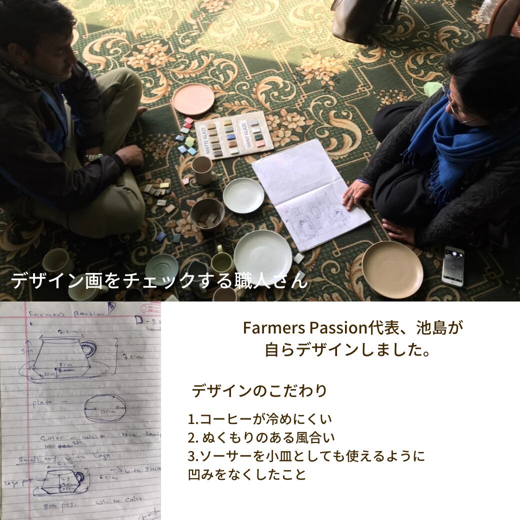 ネパールの職人さんが手作りしたFarmersPassionオリジナルのマグカップのソーサーです。小皿としてもお使いいただけます。