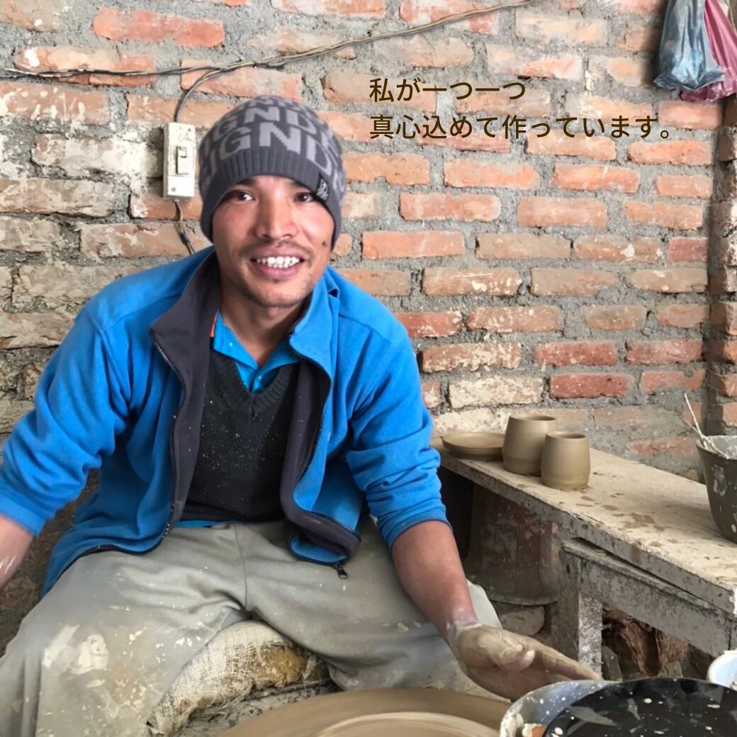 ネパールの職人さんが手作りしたFarmersPassionオリジナルのマグカップとソーサーのセットです。コーヒーが冷めにくいデザインとぬくもりのある風合いにこだわりました。ソーサーは、小皿としてもお使いいただけます。結婚祝いにもお勧めです。